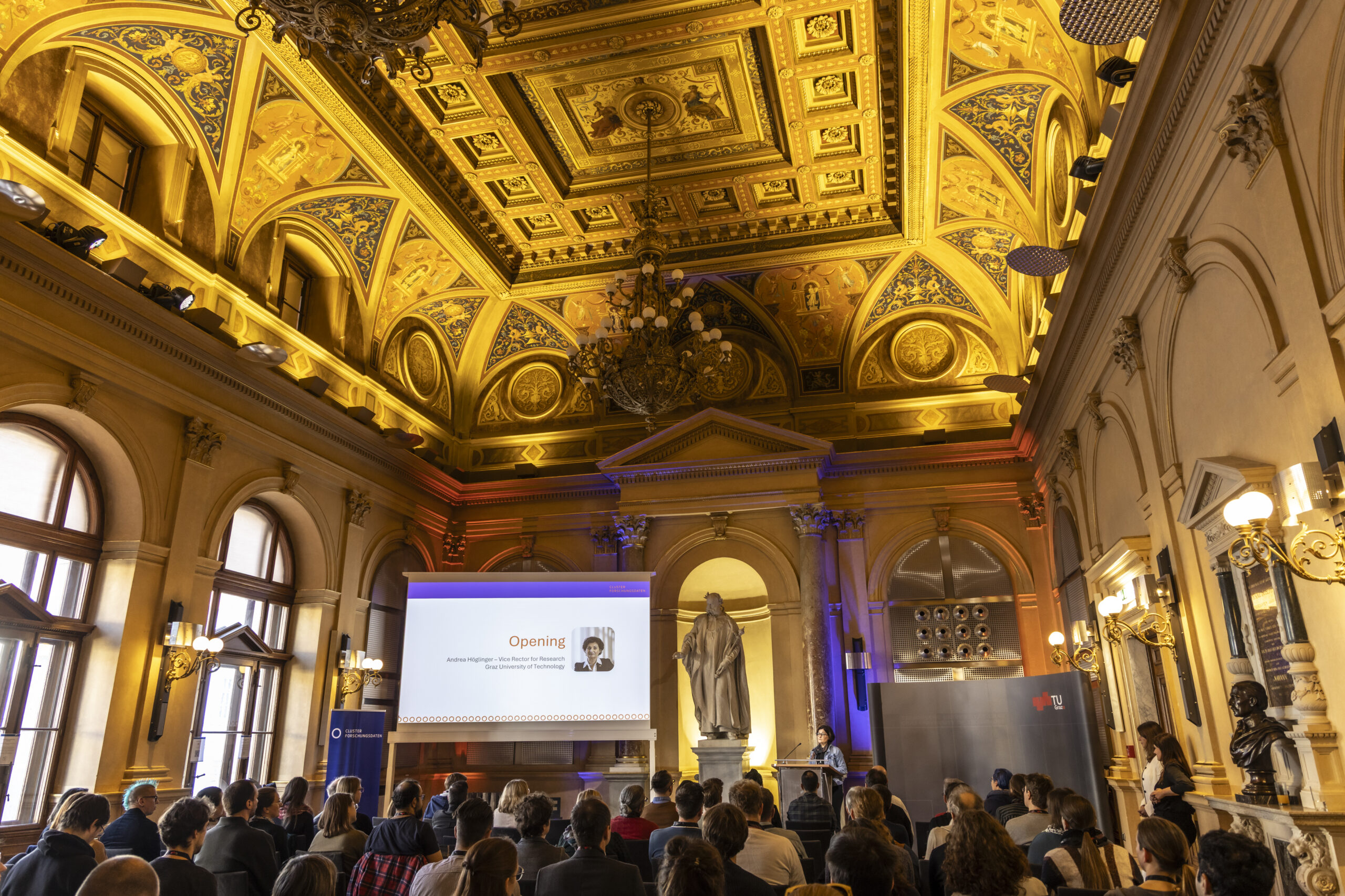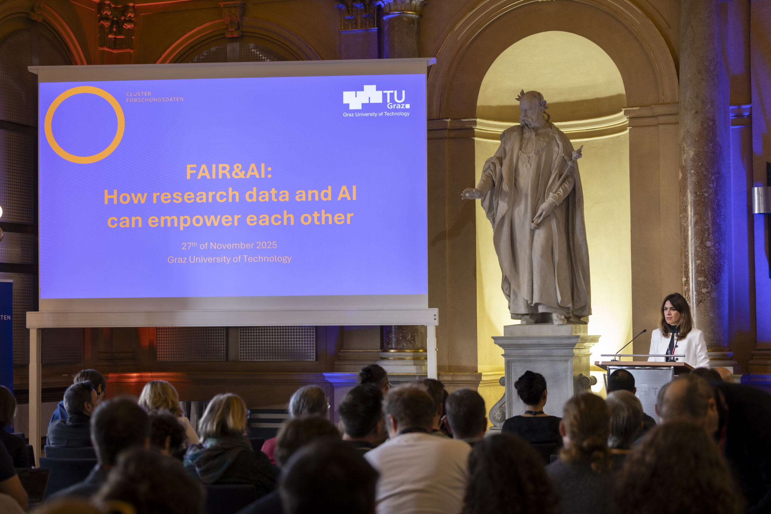 Held in the magnificent Aula of TU Graz’ historic main building, the rich program sparked lively discussions on how data management and AI development can advance together in a responsible and sustainable way.